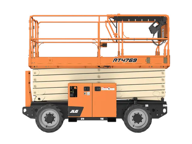 The JLG RT4769 is the tallest machine in its class, providing access to five-story heights. You'll limit trips up and down with this engine powered model that has drive-at-height capability.